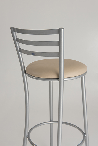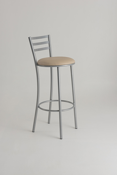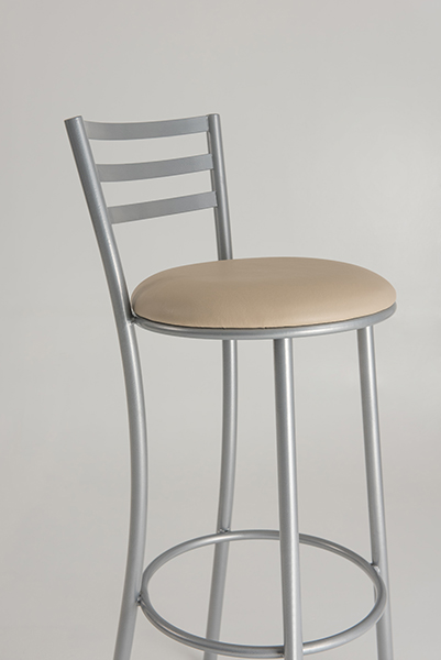 Banqueta alta de tubo de aço carbono 1″ , encosto tiras de ferro chato , com assento estofado em espuma 3,5 cm D-28 revestido em corano ou facto. Possui sapatas de pvc. Qualidade e elegância aliadas em um móvel sofisticado e durável.