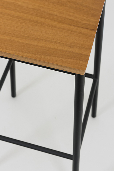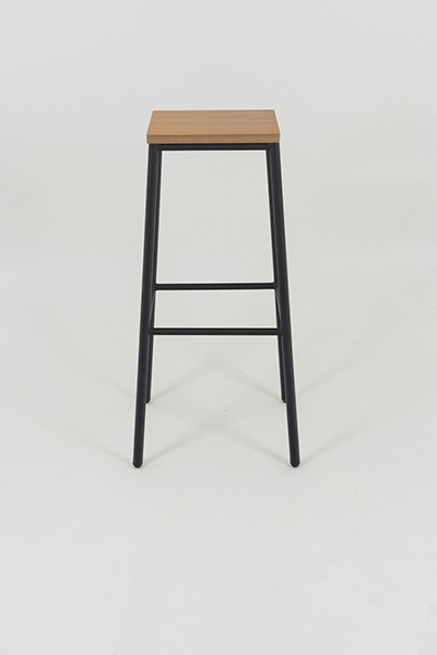Banqueta alta, sem encosto estrutura tubo 7/8 pintura epóxi, assento MDF com lamina de madeira de tauari acabamento verniz. Possui sapatas de acabamento em pvc.  Ideal para bares, cafeterias, espaços gourmet , confeitarias .