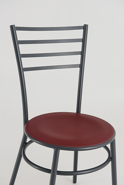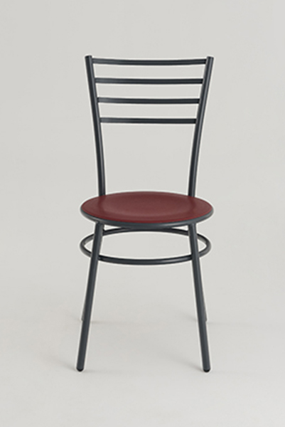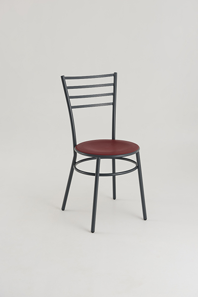 Cadeira de metal com estrutura tubo 7/8, encosto tiras de ferro chato, pintura epóxi e assento em polipropileno.Ponteira de pvc. Modernidade e requinte para o seu ambiente.