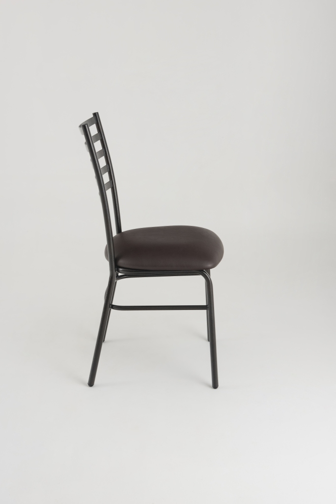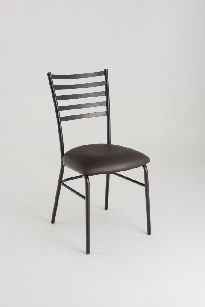 Cadeira estrutura tubo 7/8, encosto tiras de ferro chato, pintura epóxi . Assento estofado espuma 4cm revestimento corano, courissimo ou facto. Qualidade e durabilidade para seu Negócio.