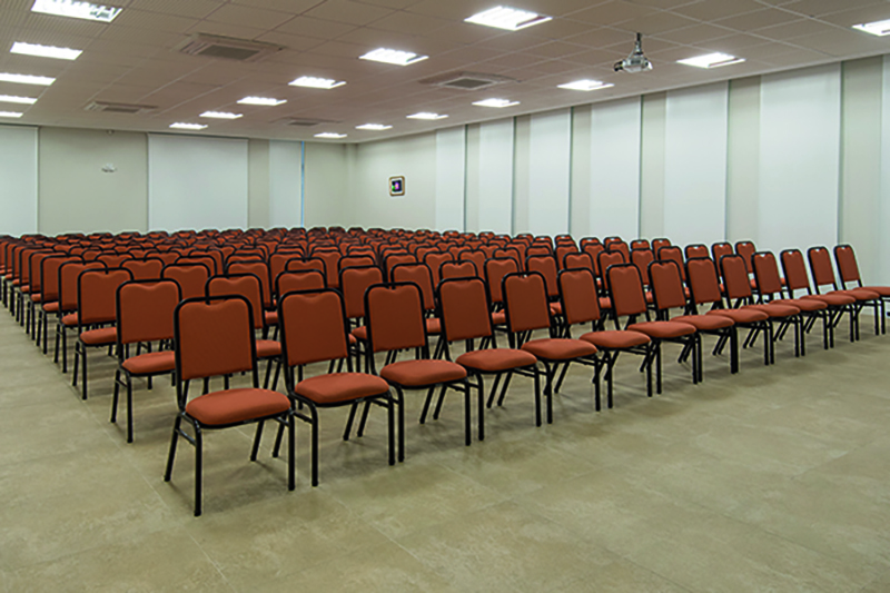 Cadeira empilhável estrutura de metal tubo 20×20, com travessas laterais tubo 15×15, com pintura epóxi. Assento estofado em espuma injetada 5 cm e encosto estofado em espuma laminada 1,5 cm, ambos revestidos em tecido ou couríssimo. Possui ponteiras articuláveis. Une conforto, sofisticação e praticidade, ideal para convenções e eventos em geral. Opção também com Prancheta Removível ou Gancho para União.
