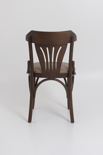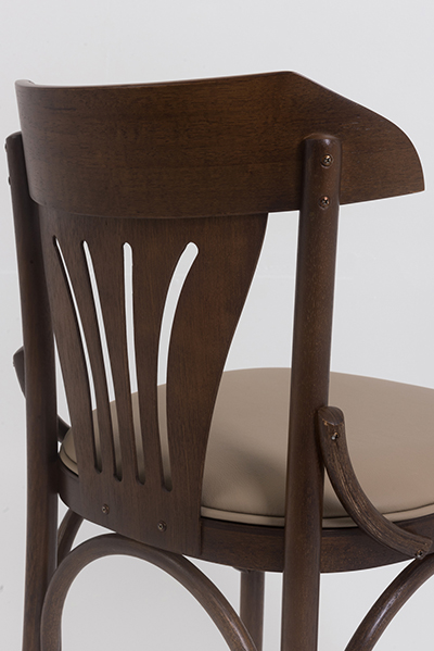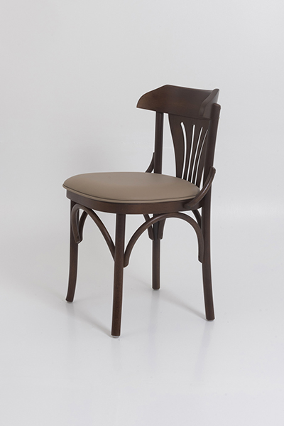 Cadeira de madeira tauari tingimento pu verniz cores Imbuia Claro, Imbuia Escuro , Mel e Tabaco . Possui Sapatas de Pvc. Espaldar Anatômico. Estofado em espuma 3,0 cm D 28, revestido em corano ou facto. Ideal para ambientes gastronômicos, proporcionando bem-estar e sofisticação.