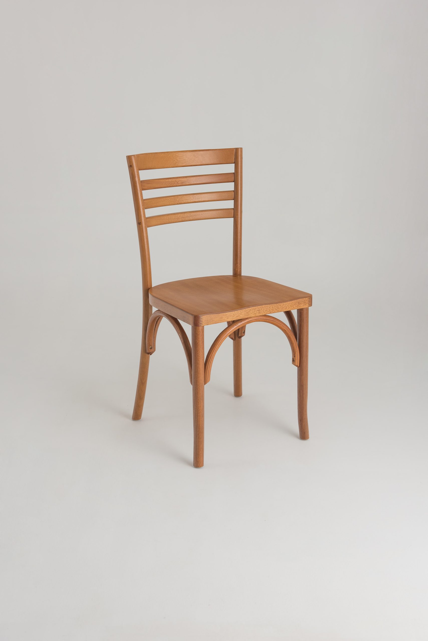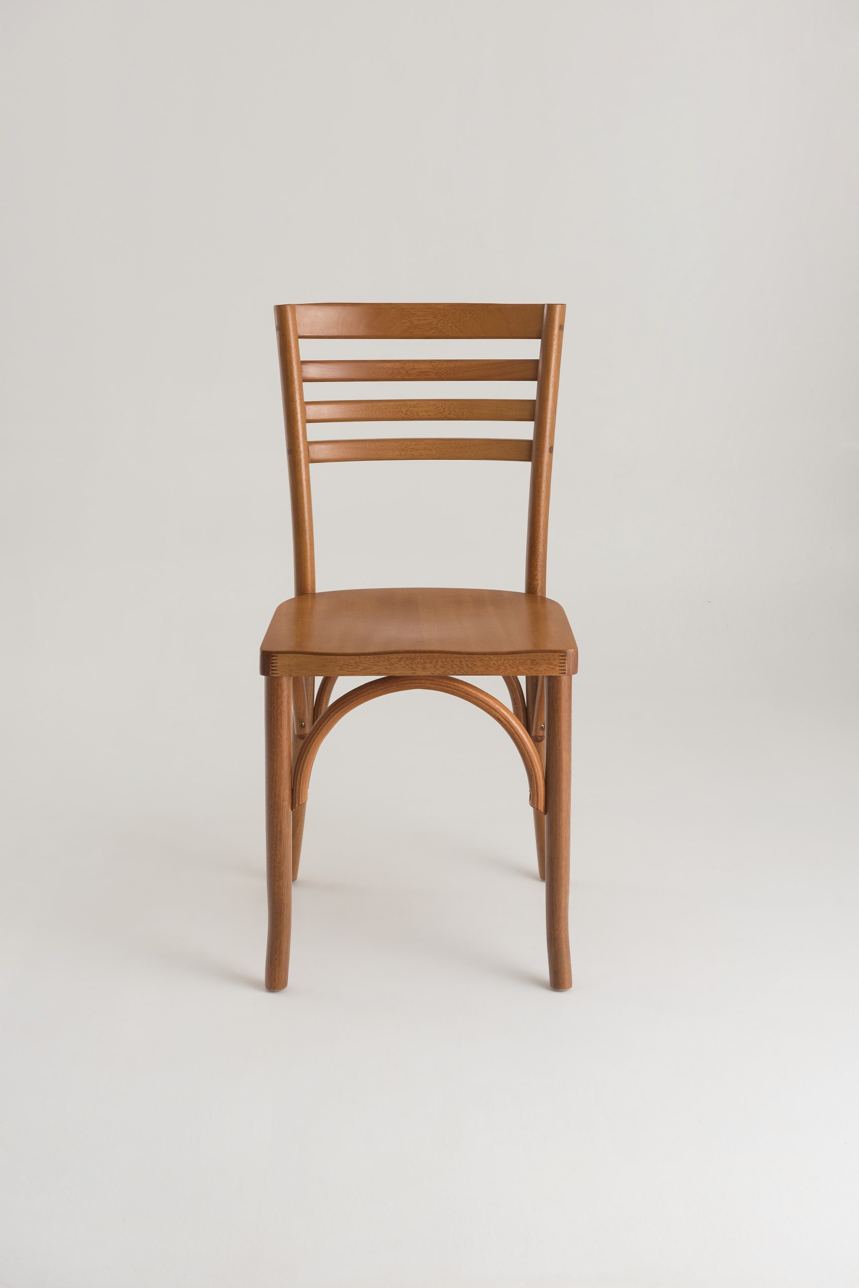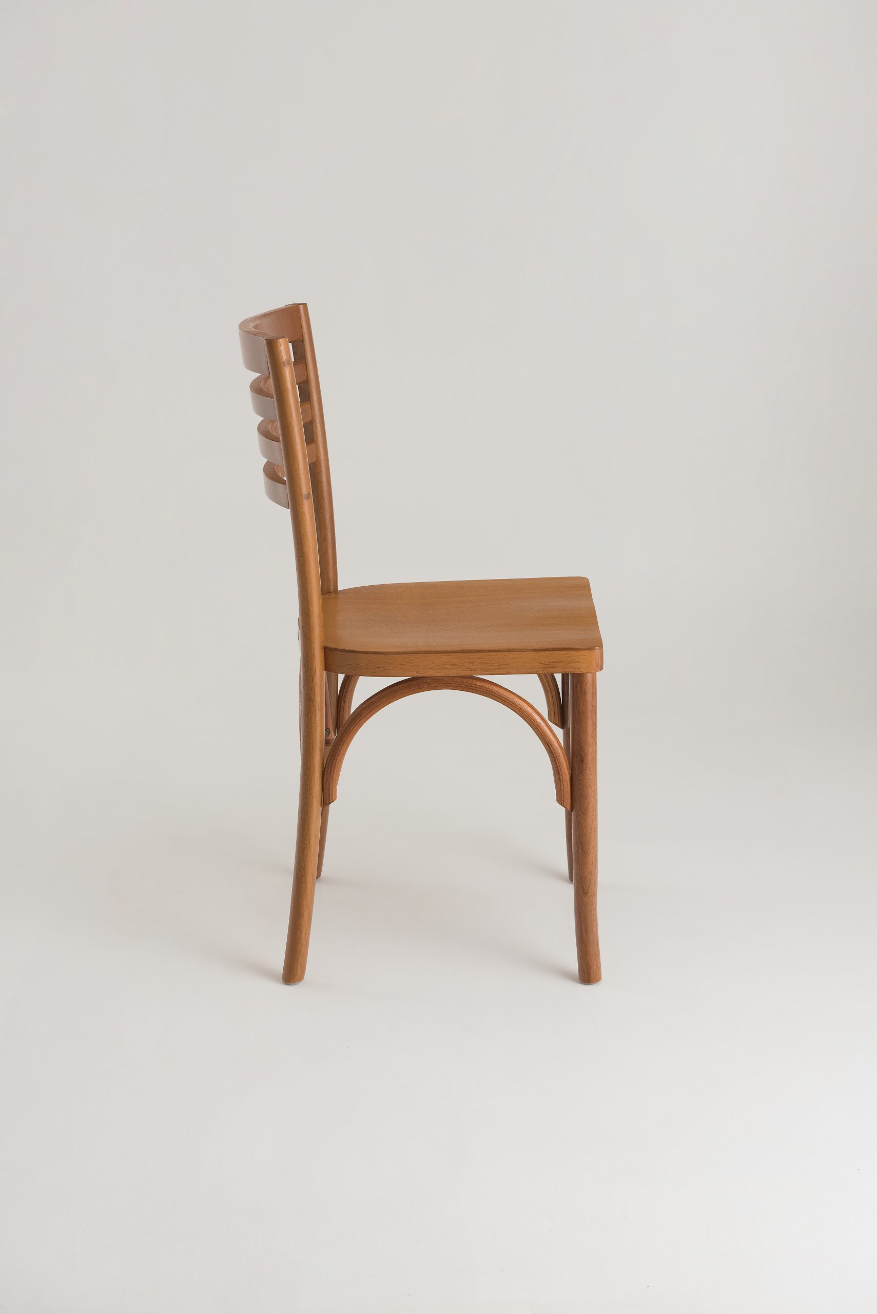 Cadeira de Madeira de Tauari, Tingimento PU Verniz cores Tabaco, Mel, Imbuia Escuro e Imbuia Claro. Possui sapatas de PVC.