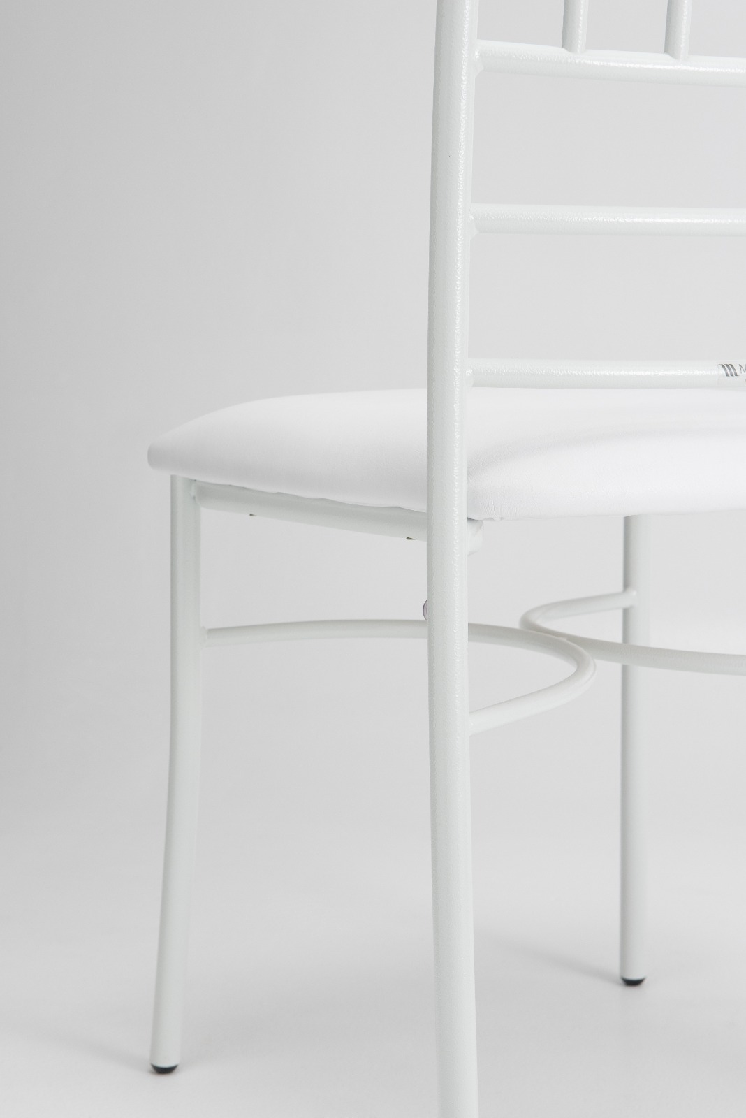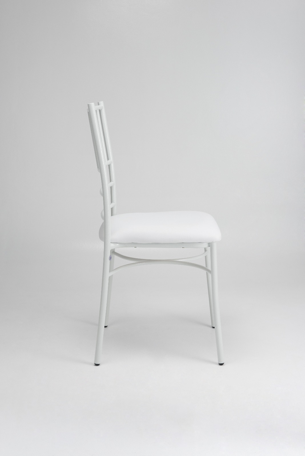 Cadeira empilhável em tubo aço carbono 7/8 encosto tubo 5/8, com pintura epóxi. Assento estofado em espuma 3,5 cm D 28 revestido em corano ou couríssimo. Perfeita para eventos, conciliando elegância, conforto e praticidade.