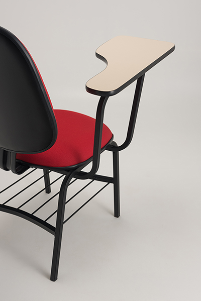 Carteira universitária, estrutura tubo 7/8, com porta livros , pintura epóxi , assento e encosto estofado em espuma injetada gomada com revestimento de tecido ou couríssimo . Prancheta padrão 26×52 em compensado revestido em laminado decorativo Fórmica , acabamento de bordas perfil pvc. Qualidade e confiabilidade para o melhor aprendizado.