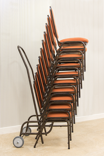 USO: Carrinho de transporte de cadeiras empilháveis para sala de convenção, hotelaria
