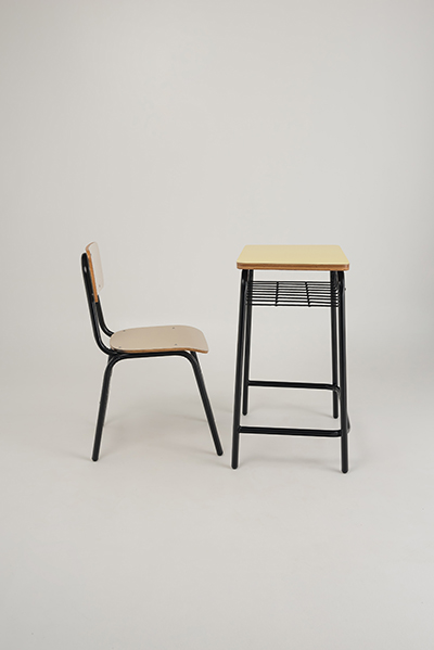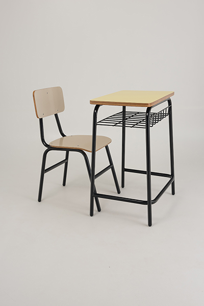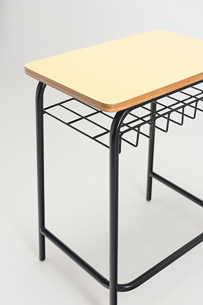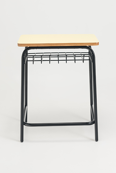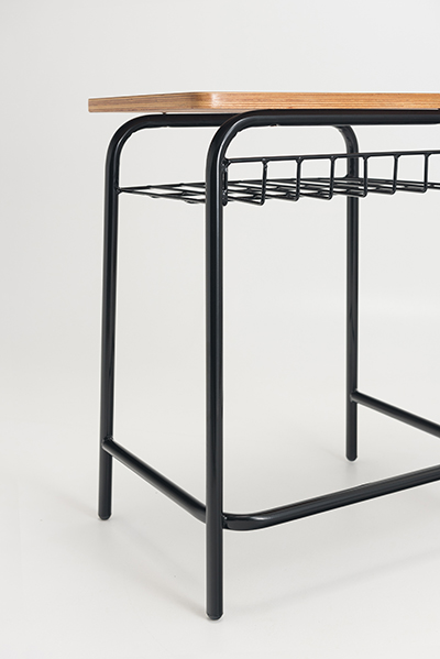 Carteira escolar infantil com estrutura tubo 3/4, pintura epóxi preto brilho, com porta livros e tampo em compensado multi-laminado de acabamento laminado decorativo Fórmica. Qualidade e confiabilidade para o melhor aprendizado.