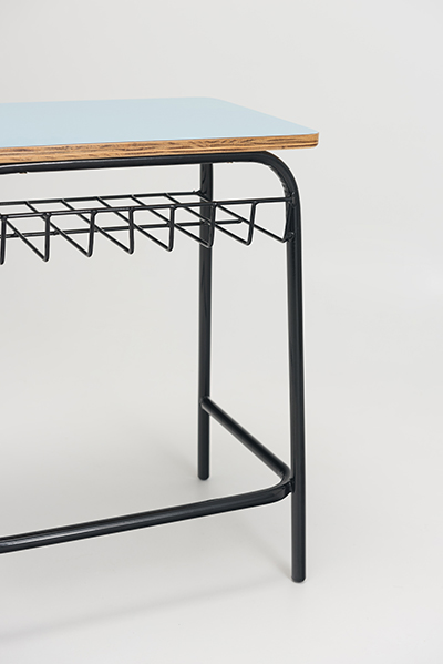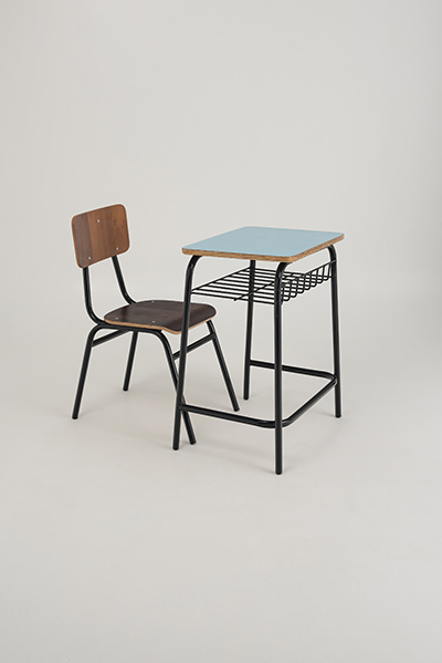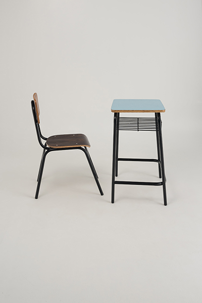 Carteira escolar juvenil com estrutura tubo 7/8, pintura epóxi, com porta livros e tampo em compensado multilaminado com acabamento laminado decorativo fórmica. Qualidade e confiabilidade para o melhor aprendizado.