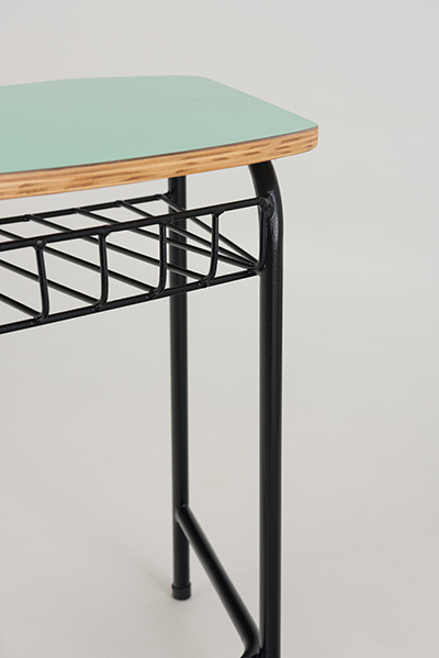 Carteira escolar infantil com estrutura tubo 3/4 pintura epóxi, com porta livros e tampo trapezoidal em compensado multilaminado de acabamento laminado decorativo fórmica. Qualidade e confiabilidade para o melhor aprendizado.