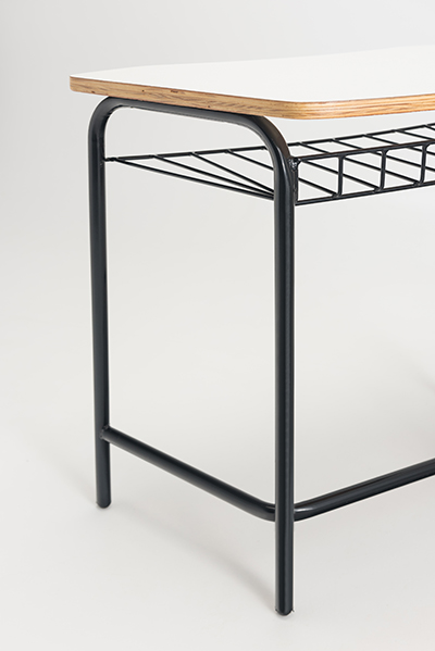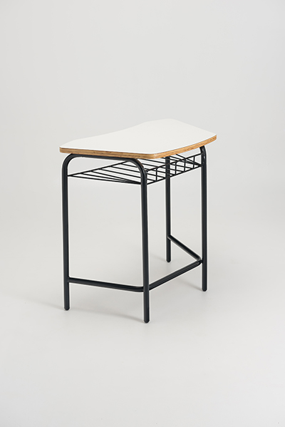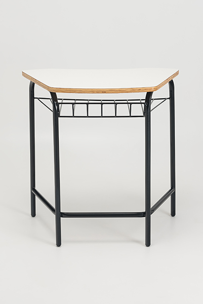 Carteira escolar juvenil com estrutura tubo 7/8, pintura epóxi, com porta livros e tampo trapezoidal em compensado multi-laminado de acabamento laminado decorativo fórmica. Qualidade e confiabilidade para o melhor aprendizado.