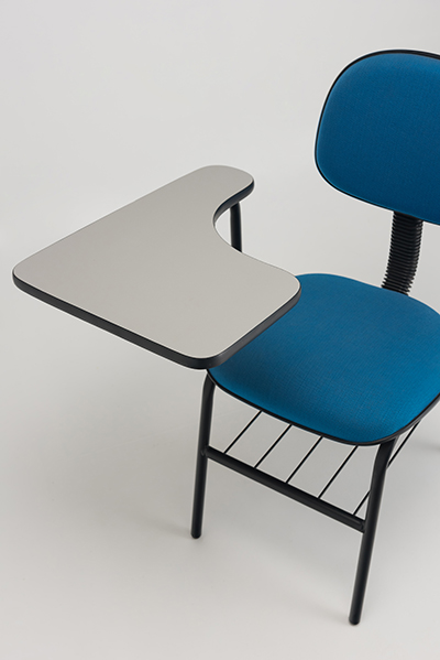 Carteira universitária, estrutura tubo 7/8, com porta livros , pintura epóxi preto texturizado , assento e encosto modelo secretária estofado em espuma injetada com revestimento de tecido J Serrano . Prancheta média 39×53 em mdf acabamento de bordas perfil pvc. Qualidade e confiabilidade para o melhor aprendizado.