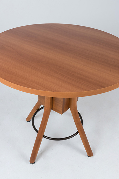 Mesa Redonda de madeira de tauari tingimento pu verniz cores Tabaco, Mel, Imbuia Escuro e Imbuia claro .Tampo 100 cm de diâmetro,  em MDF melamínico , borda engrossada acabamento fita  ou lamina natural .Possui sapatas reguláveis. Consulte outras opções de dimensões de tampo. Ideal para bares , cafés , restaurantes, pizzarias , condomínios , espaços gourmet.