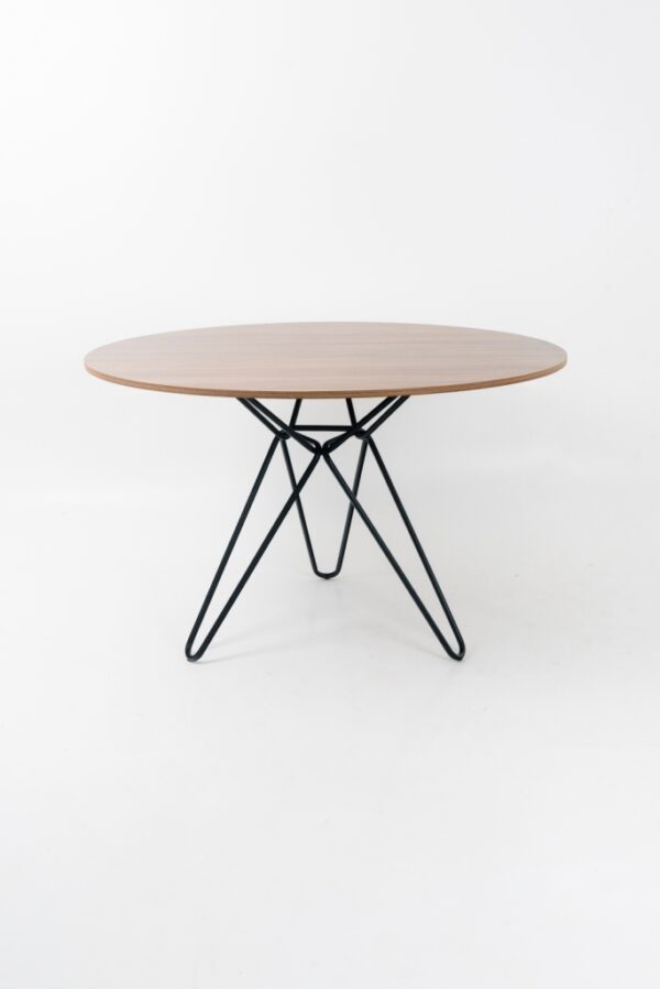 Mesa estrutura tubo 1/2″, pintura epóxi preto fosco, tampo 90cm ou 105cm, acabamento de borda fita. Altura de 77cm