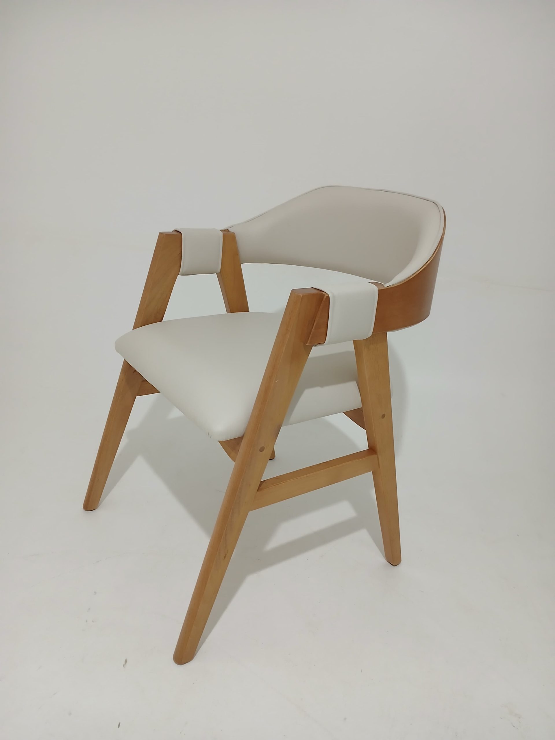 Cadeira de Madeira de Tauari tingimento PU Verniz, cores Ebano, Mel, Imbuia Escuro e Imbuia Claro. Assento estofado espuma laminada 3 cm D-28 revestimento em Corano ou Facto. Possui sapatas de PVC.