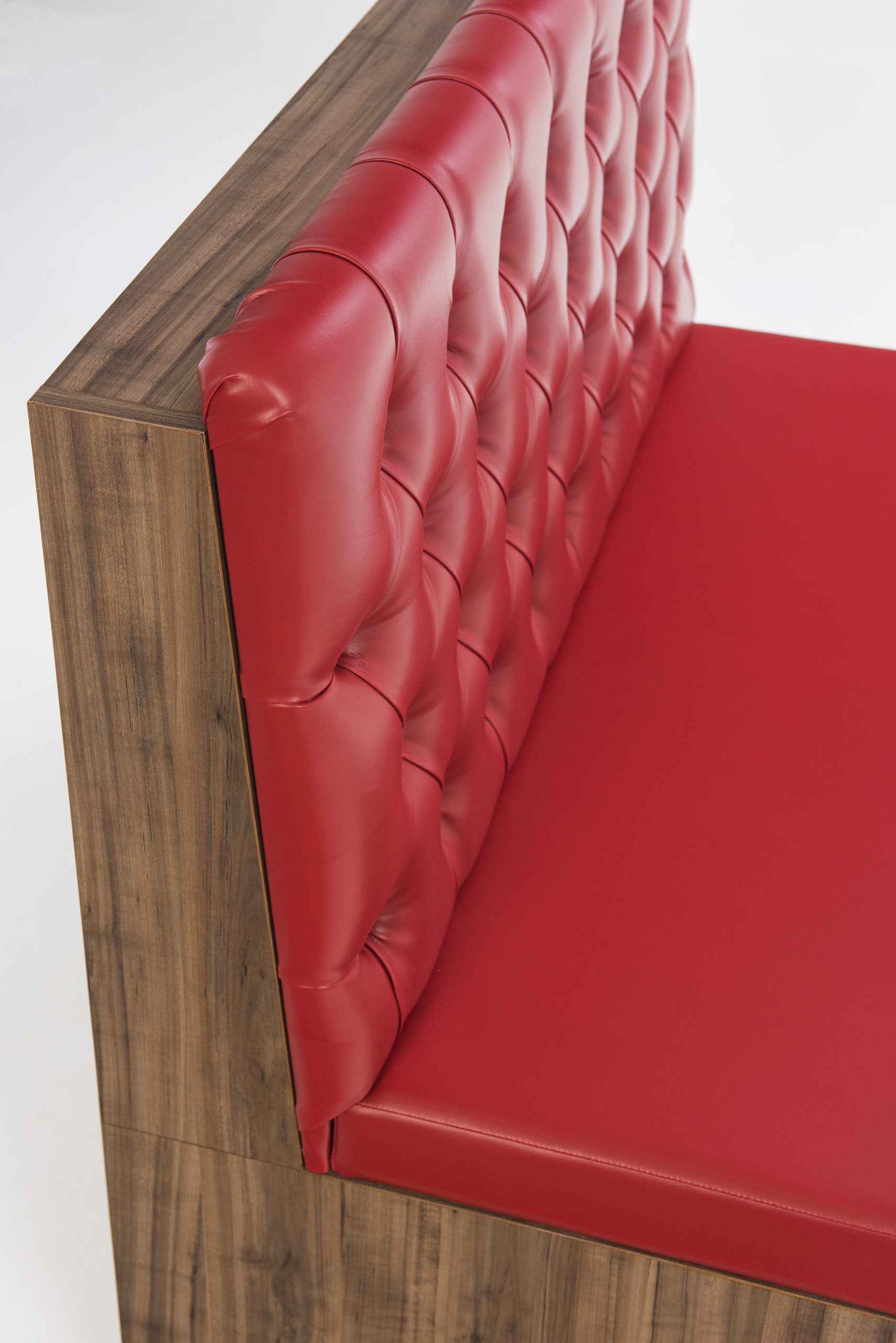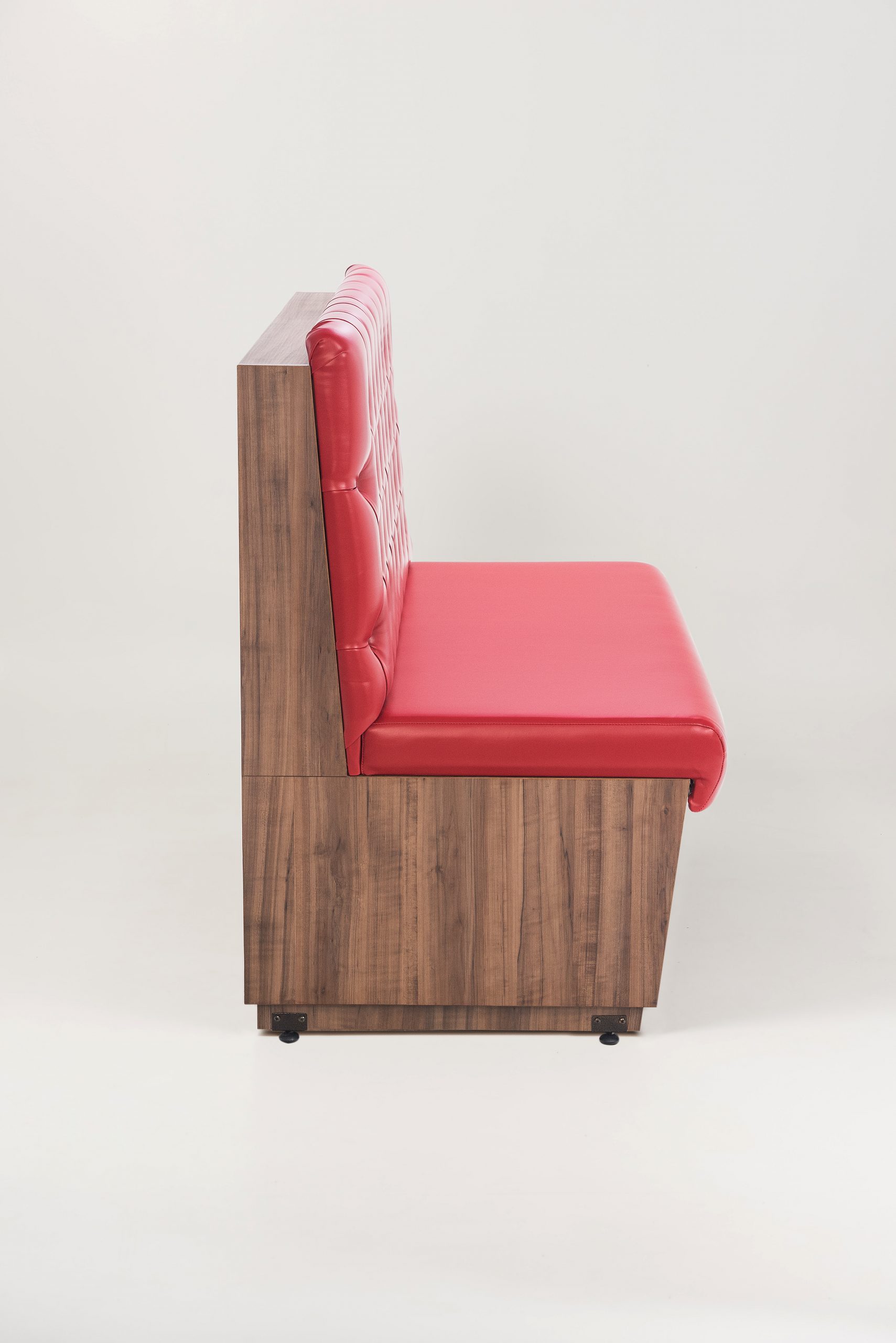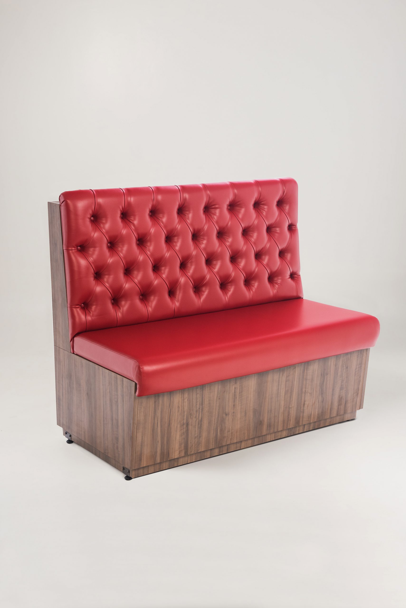 Sofá booth com estrutura de MDF, assento estofado em espuma 6,5 cm D 28, encosto estofado em espuma 5 cm D 28, revestimento em corano, couríssimo ou facto. Com acabamento com detalhe em botões captone. Possui Sapatas reguláveis. Ideal para deixar seu ambiente mais aconchegante e requintado. Consulte outras opções de cores e medidas.