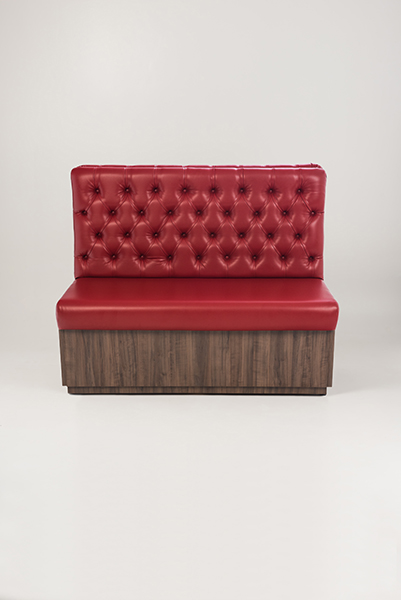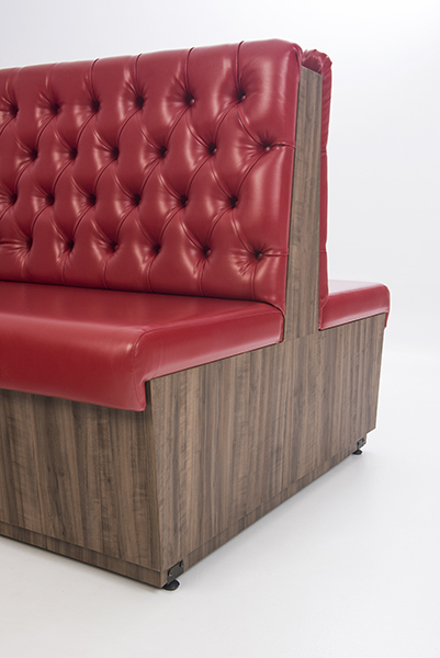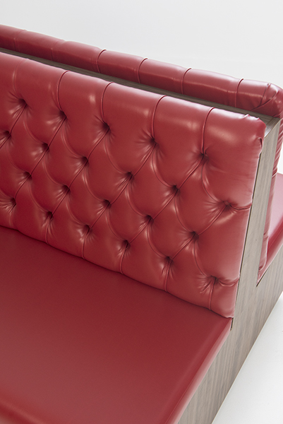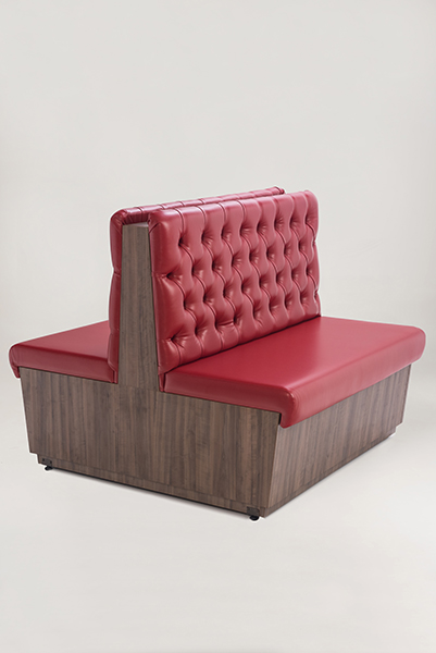 Sofá booth duplo com estrutura de MDF, assento estofado em espuma 6,5 cm D 28, encosto estofado em espuma 5 cm D 28, revestimento em corano, couríssimo ou facto. Com acabamento com detalhe em botões captone. Possui Sapatas reguláveis. Ideal para deixar seu ambiente mais aconchegante e requintado. Consulte outras opções de cores e medidas.