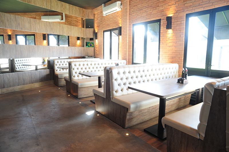 TIPO: Sofá booth duplo, também chamado de sofá para restaurante ou sofá de parede