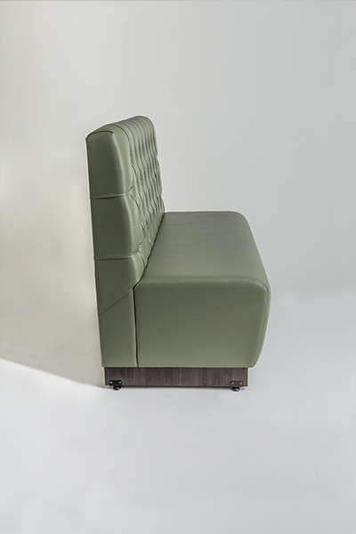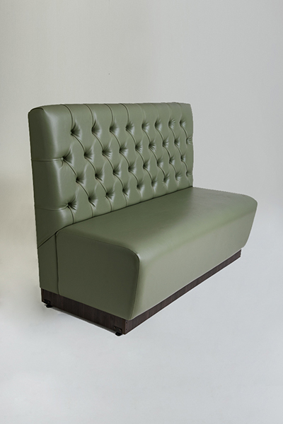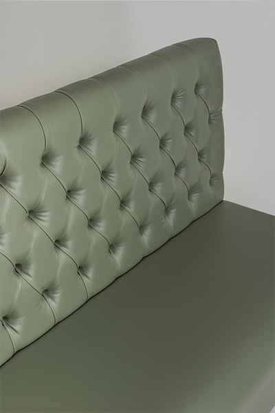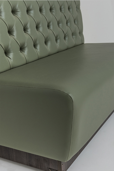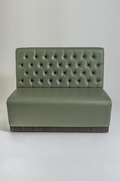 Sofá booth com estrutura interna de MDF, assento estofado em espuma 6,5 cm D 28, encosto estofado em espuma 5 cm D 28, revestimento em corano, couríssimo ou facto. Com acabamento com detalhe em botões captone. Possui Sapatas reguláveis. Ideal para deixar seu ambiente mais aconchegante e requintado. Consulte outras opções de cores e medidas.